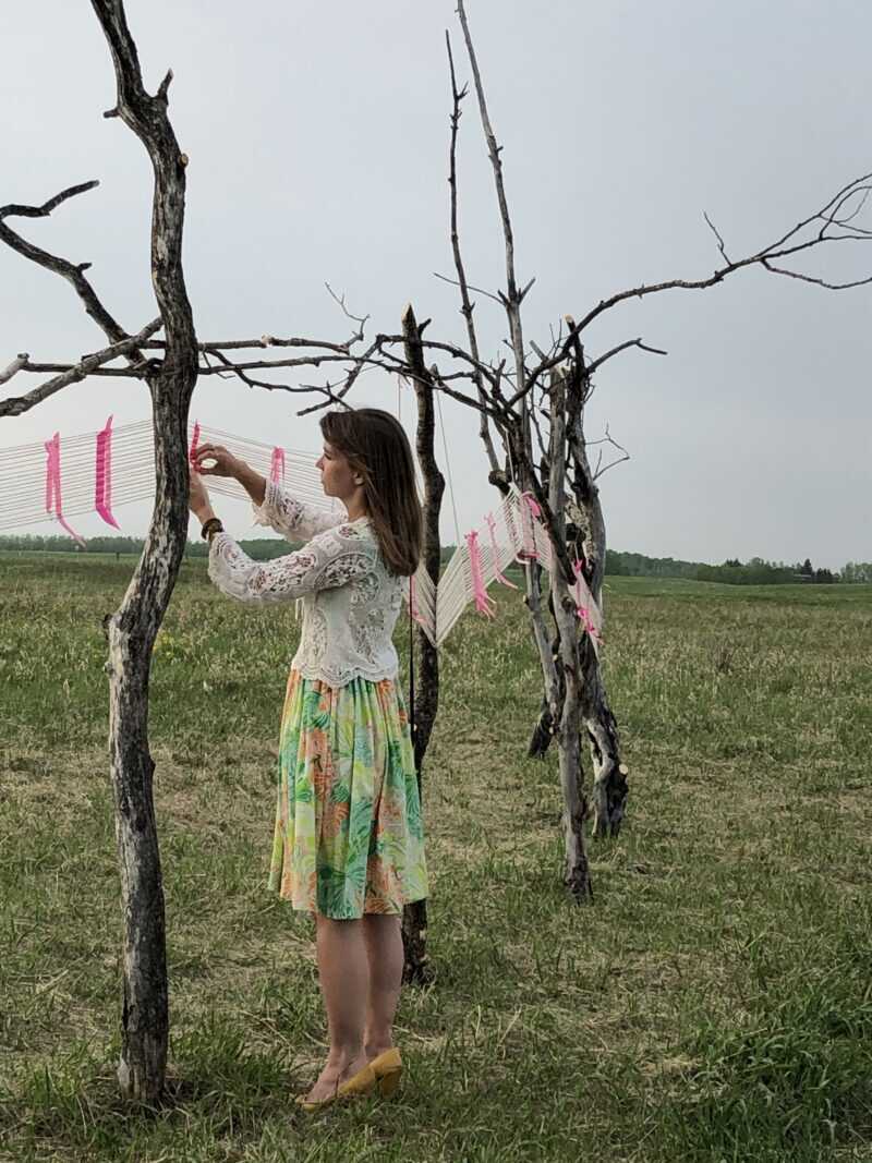 Lignes Vitales est une installation artistique temporaire conçue pour le Leighton Art Centre, près de Calgary, en collaboration avec l’artiste Patricia Lortie. Ensemble, nous avons imaginé et construit une structure linéaire de 18 mètres, faite de bois récolté sur place. Sur cette ossature a été tissée une tapisserie de souhaits : pendant six mois, les visiteurs ont été invités à écrire leurs vœux, donnant naissance à une œuvre collective et vivante, à la frontière de l’art et de la nature.